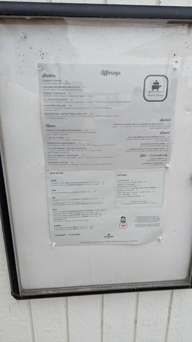 Dillon Beach General Store Menu
